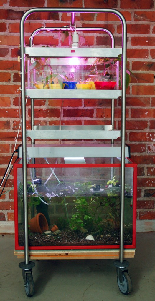 Aquariponics – food production system installation (aquarium, fishes, plants symbosium)