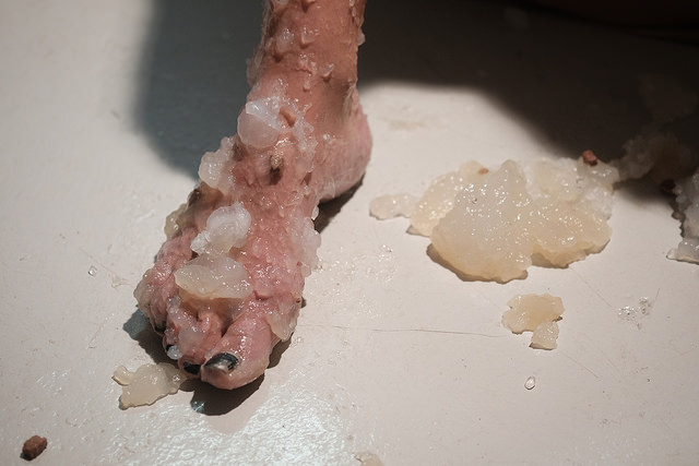 In the performance, I am inside the box which is filled with meat gello, lihahyytelö – alatoopi in Finnish, its made with cat food. Duration about an hour. Thanks for Arttu, Max, Katri, Vappu, Antti & Co for your helpful hands. Special thanks goes to the dog who licked my skull.