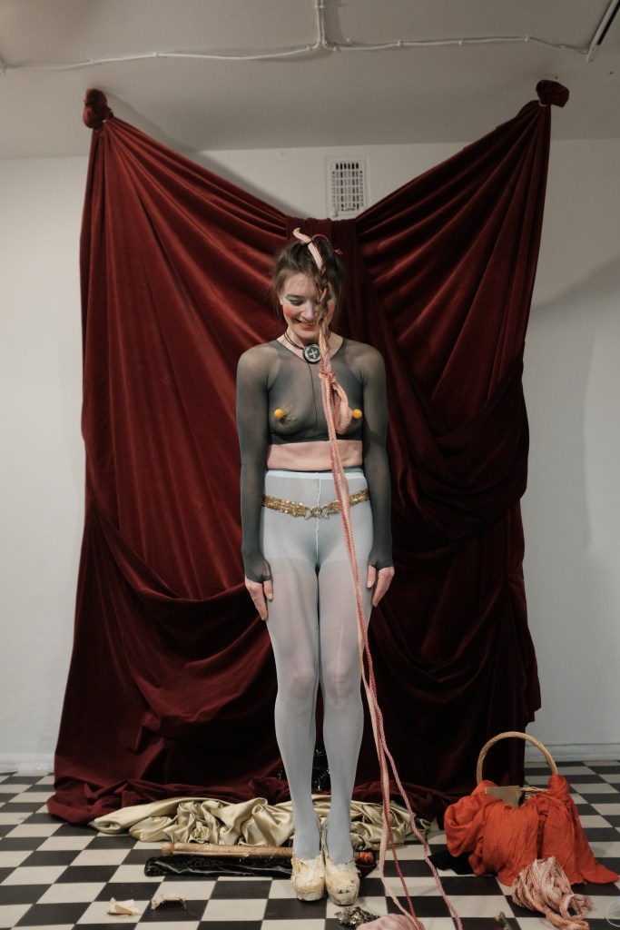 16.1.2021 solo performance, Oksasenkatu 11 Gallery, Helsinki, Finland. Curated by Aino Johansson – Performance art event during her exhibition Kaiken keskellä. Photos Antti Ahonen